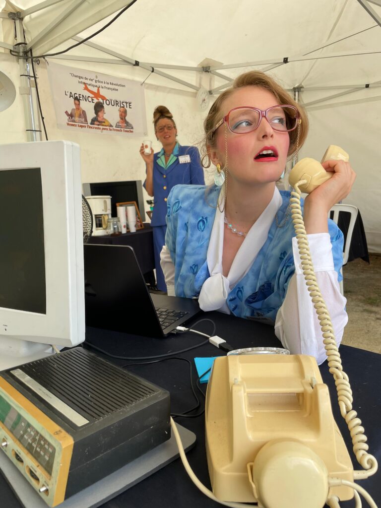 Jean-Michel et Jean-Luc vous accueillent au Salon de l’Innovation de Saint-Etienne 1984 dans leur stand révolutionnaire de l’AGENCE TOURISTE.